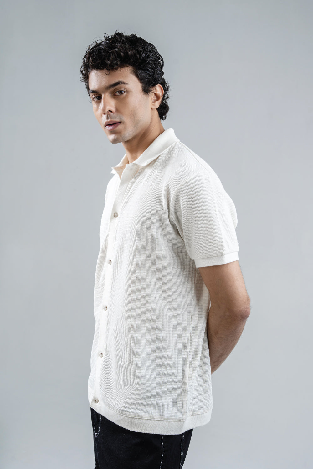 Our Regular Fit Sleeveless Button-Down Shirt, crafted from Premium jacquard fabric with a luxurious waffle-knit texture. This high-quality statement piece adds an unmistakable flair to any outfit, effortlessly transitioning from casual to formal, while exuding a refined, luxurious feel