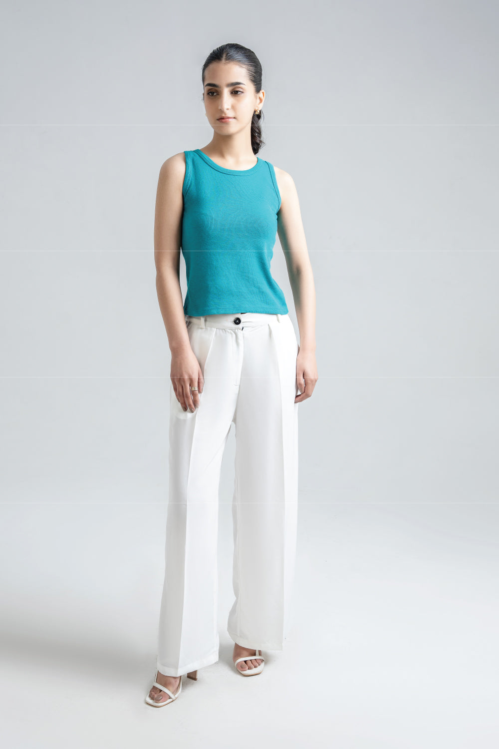 The solid-colored tank top offers a simple, versatile design, perfect for layering or wearing on its own for a casual, everyday look.