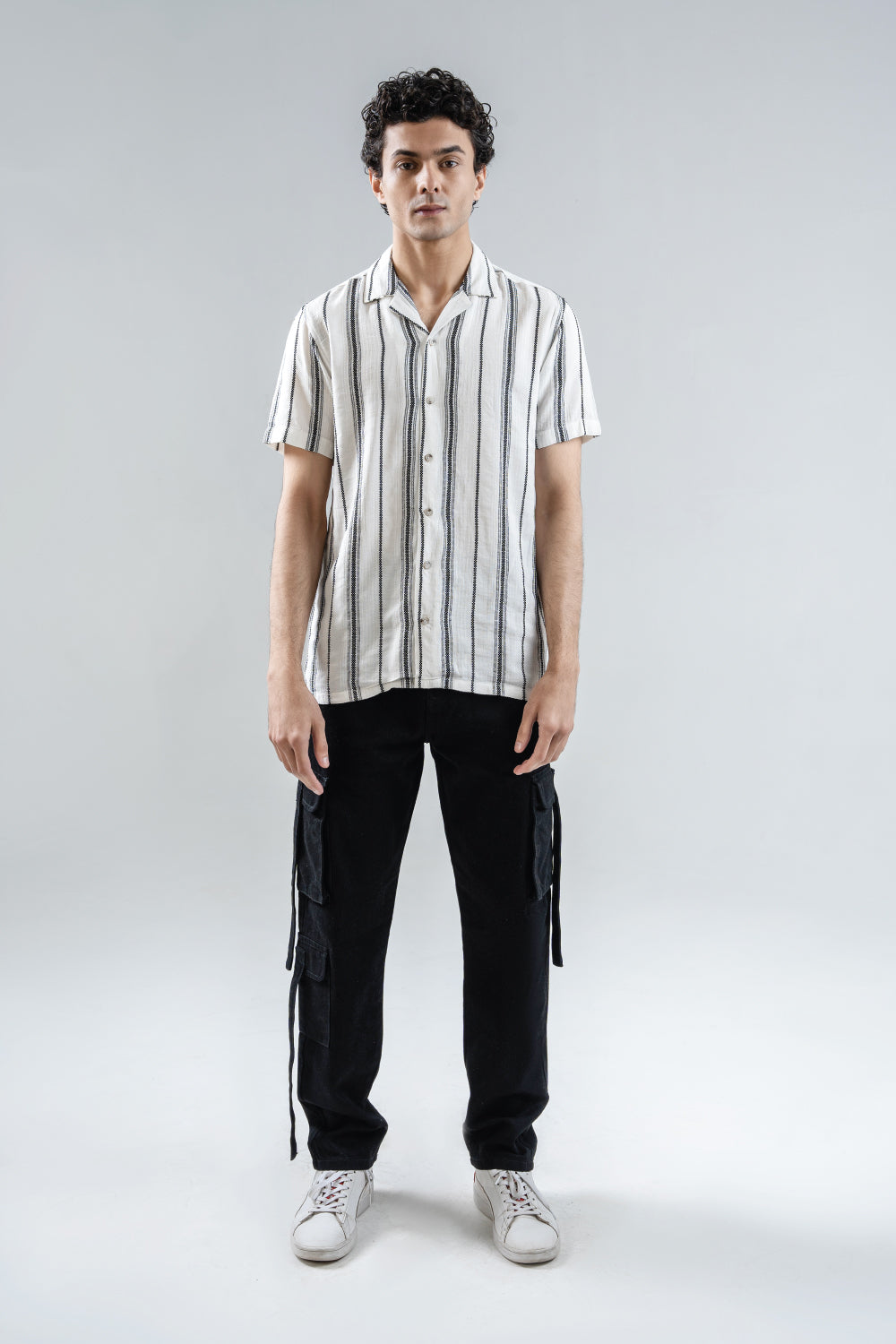 Our Signature Button-Down Striped Shirt, woven with 100% cotton features a regular fit and showcases intricate embroidered stripes running down the shirt, designed with our exclusive 3-in-1 stripe pattern