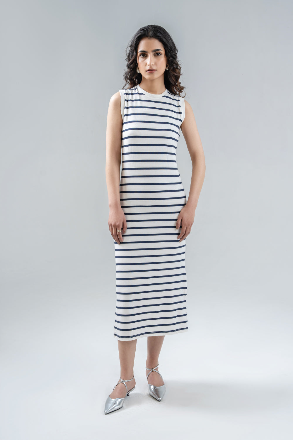 A figure-hugging striped dress in lycra jersey fabric, blending style and comfort with a perfect fit.