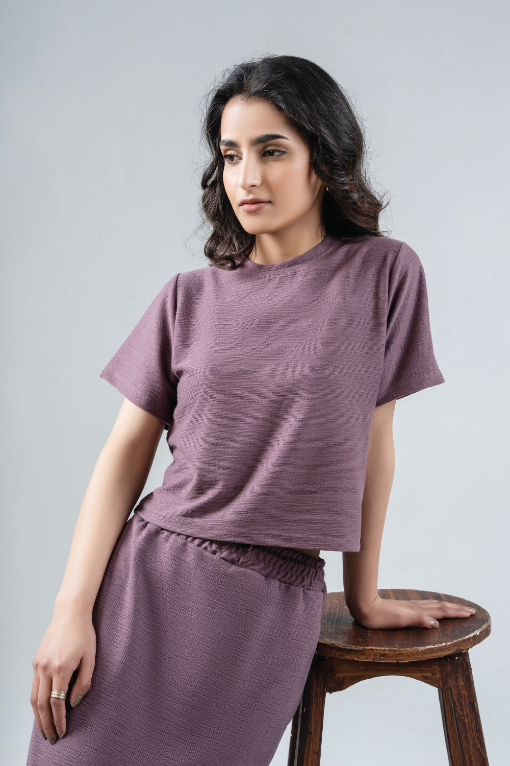 Made from textured jacquard fabric, this cropped fit t-shirt combines a stylish design with a comfortable, modern silhouette.